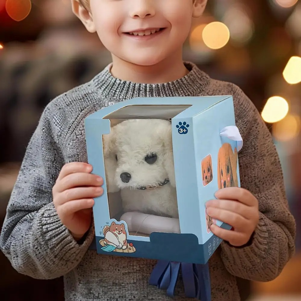 The puppy is an ultra-realistic plush toy that appeals to both adults and children!
